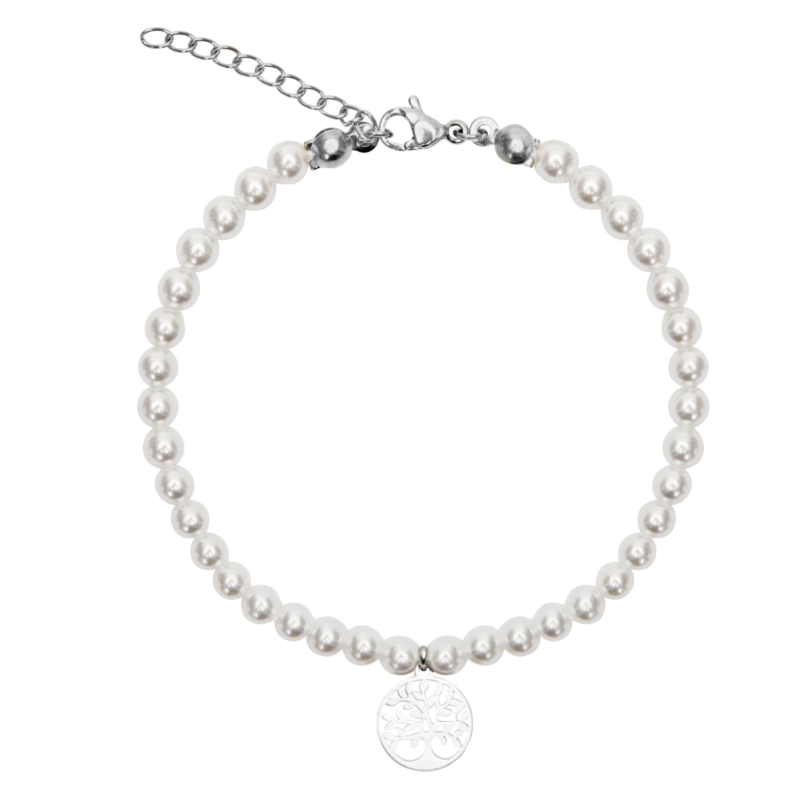 Beautiful bracelet with pearls and the tree of life symbol. The bracelet has an extension chain of approximately 3 cm, making it adjustable in length.
