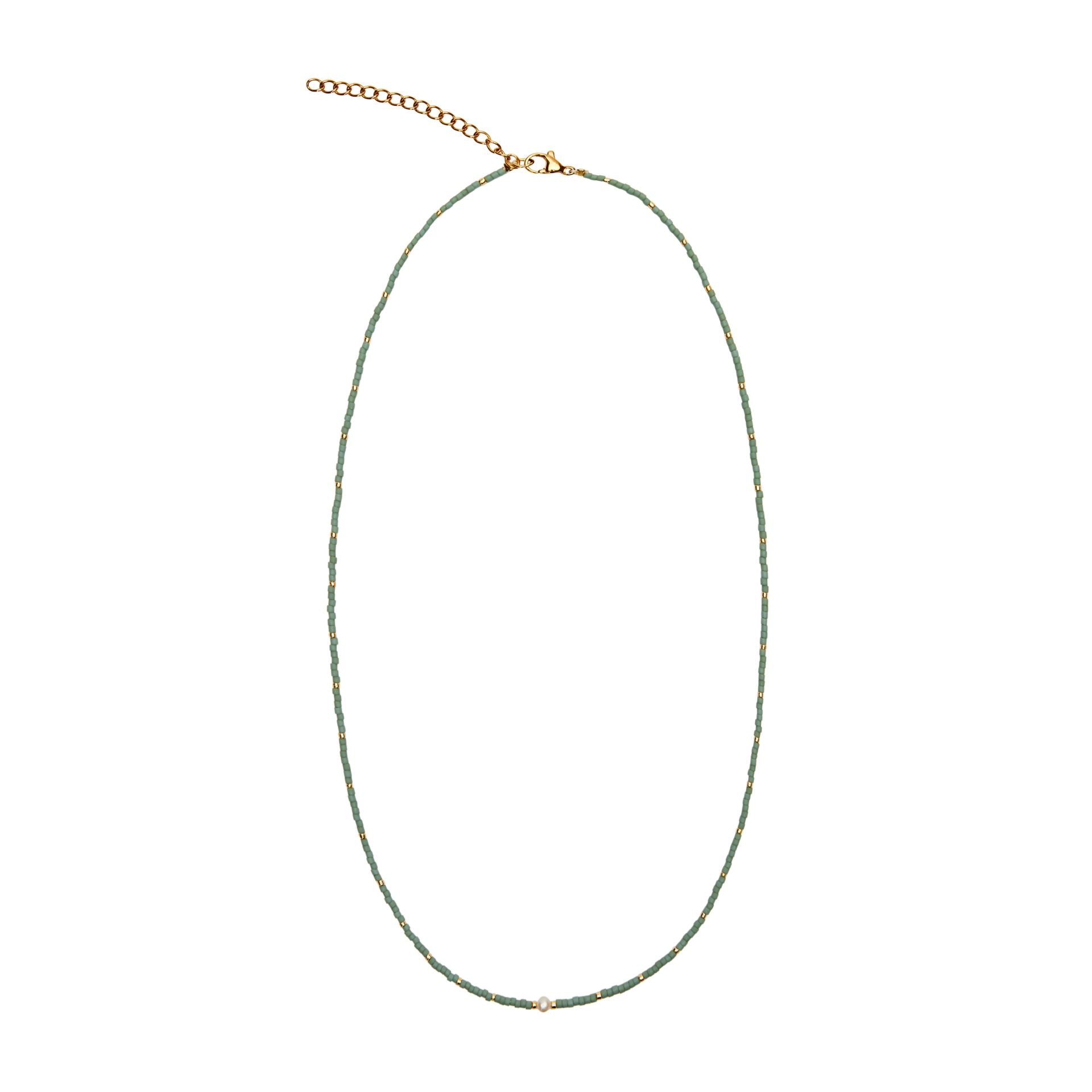 A beautiful necklace made of a combination of Miyuki and cultured freshwater pearls in mint. The necklace has an extension chain of approximately 5 cm, making it adjustable in length.