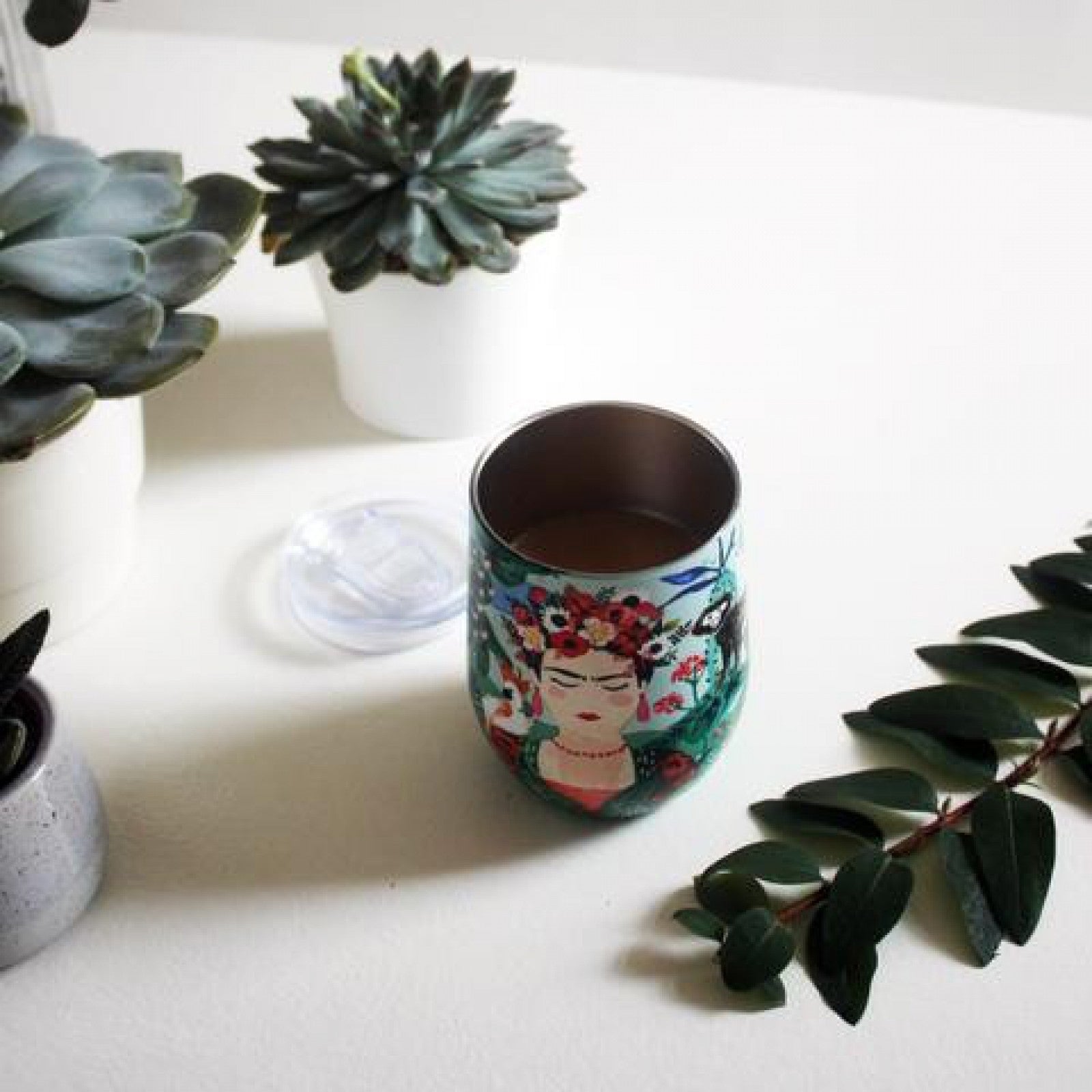 Features: Our signature tumblers are meticulously crafted from high-quality stainless steel with double-wall vacuum technology to keep your drinks hot or cold. Our tumblers come with a BPA-free, spill-proof, clear plastic lid. Stylish, convenient, and eco-friendly. Exclusively designed by Disaster and endorsed by the Frida Kahlo Foundation.