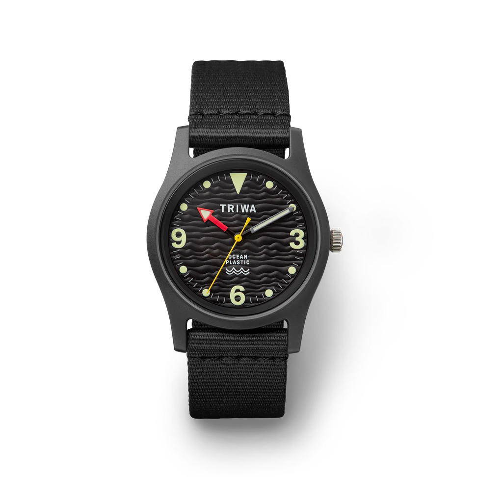 This black eco-friendly watch makes you look like someone who knows what they're doing, even if you're just out for coffee. The polished 3D wave dial evokes the depths of the ocean, while the sustainable design and 10 ATM water resistance make it ideal for life in the city or by the sea. The bold black silhouette seamlessly complements both formal and casual attire.