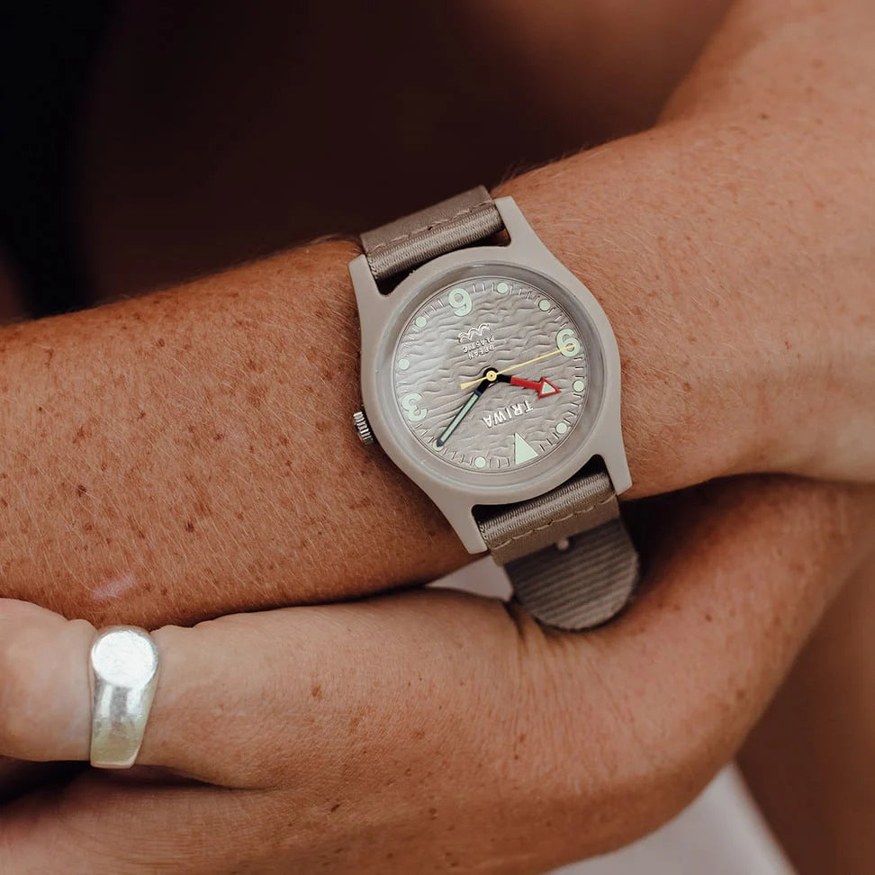 This beige eco-friendly watch will make you look like someone who knows what they're doing, even if you're just out for coffee. The polished 3D wave dial evokes the depths of the ocean, while the sustainable design and 10 ATM water resistance make it ideal for life in the city or by the sea. The striking beige silhouette pairs seamlessly with both formal and casual outfits.