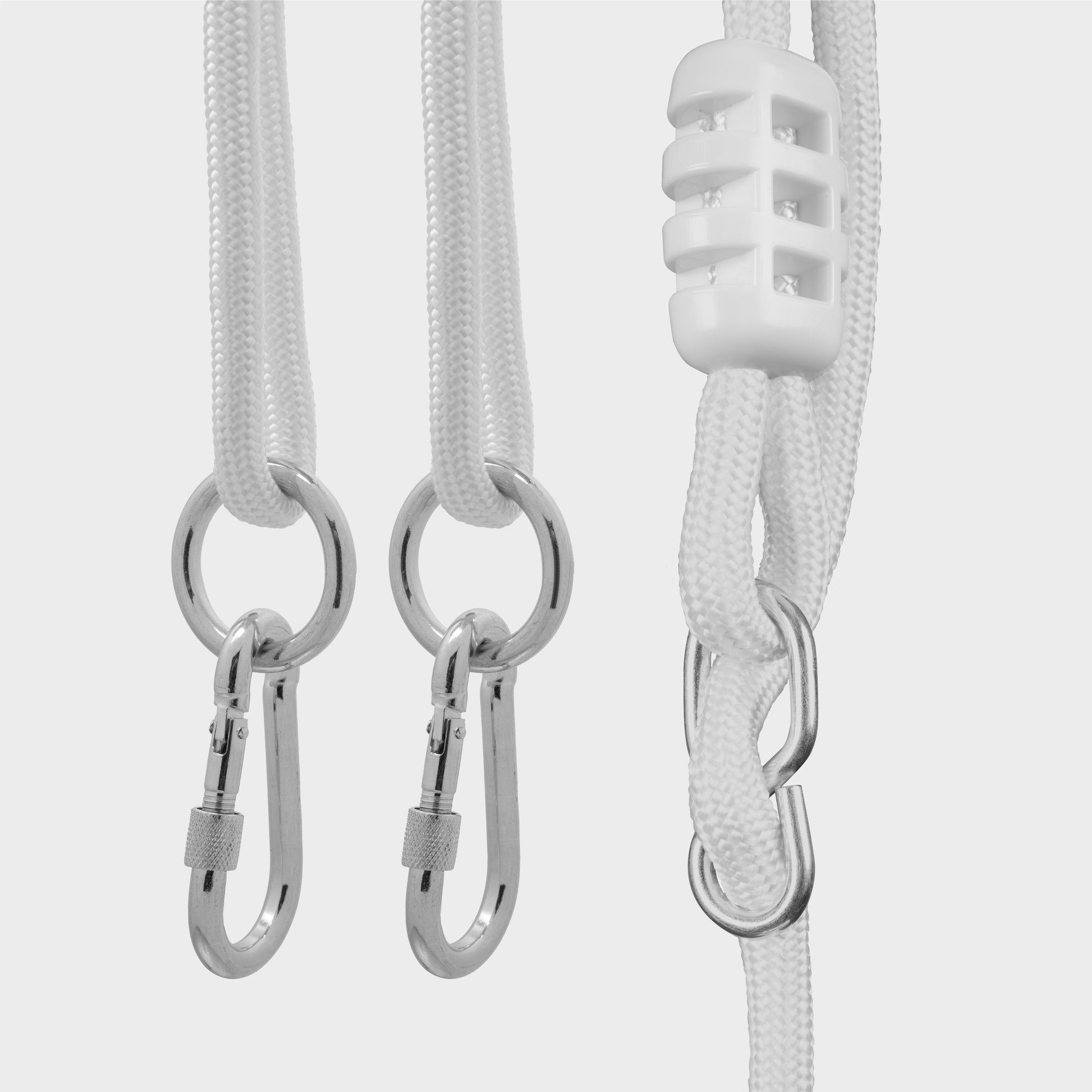 The 2 carabiners included in the set allow you to hook the swing to the prepared mounting structure (beams/hooks).