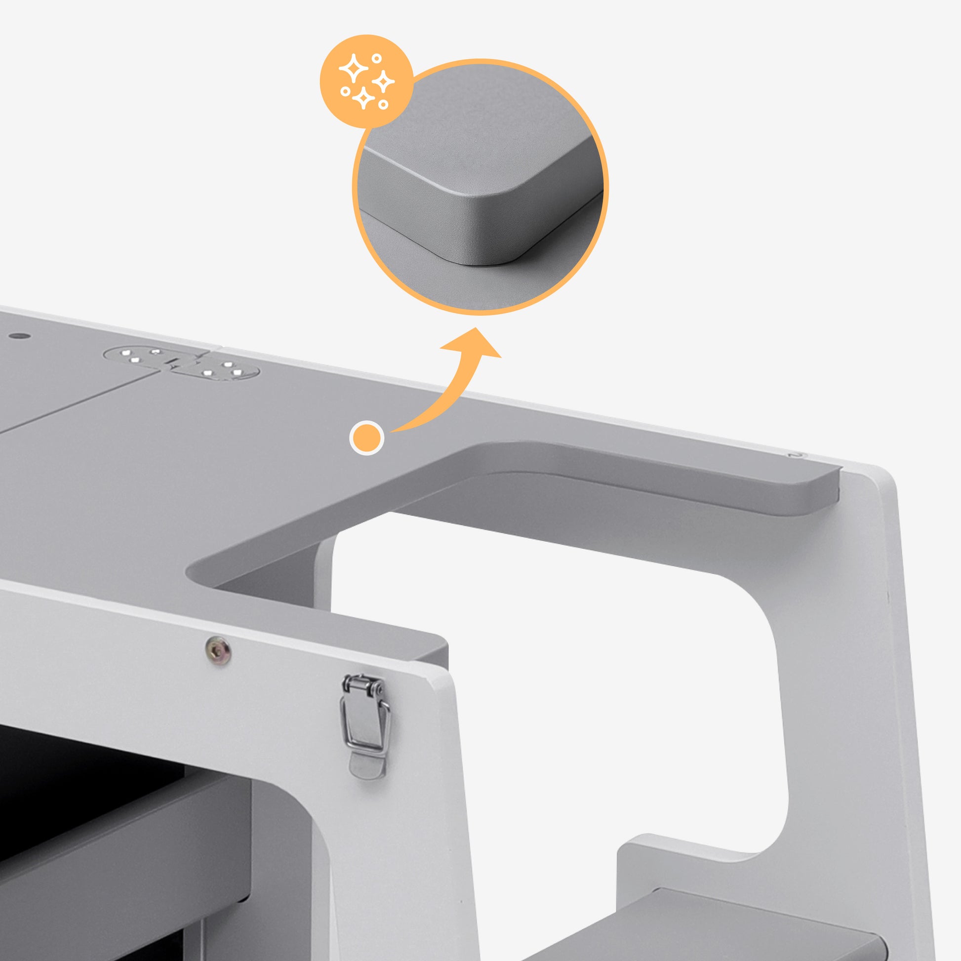 Rounded edges - no risk of injury. Smooth, laminated MDF surface. Easy to clean - simply wipe with a damp cloth. Resistant to everyday use and kitchen grime.