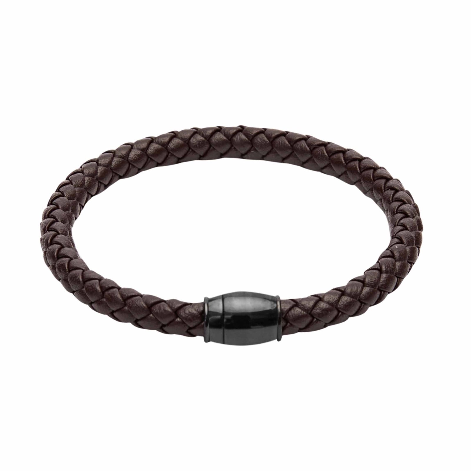 Nowoczesna skórzana bransoletka męska w kolorze brązowym.