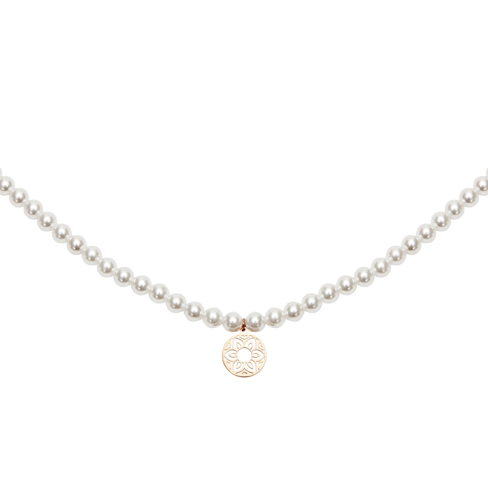 Naszyjnik Crystals by HCA z różowego złota z perłami i mandalą miłości