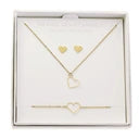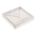 Elegancki zestaw prezentowy składający się z kolczyków, bransoletki i naszyjnika. Pięknie zapakowany w kremowe pudełko prezentowe z błyszczącym, efektownym srebrnym tłoczeniem.
