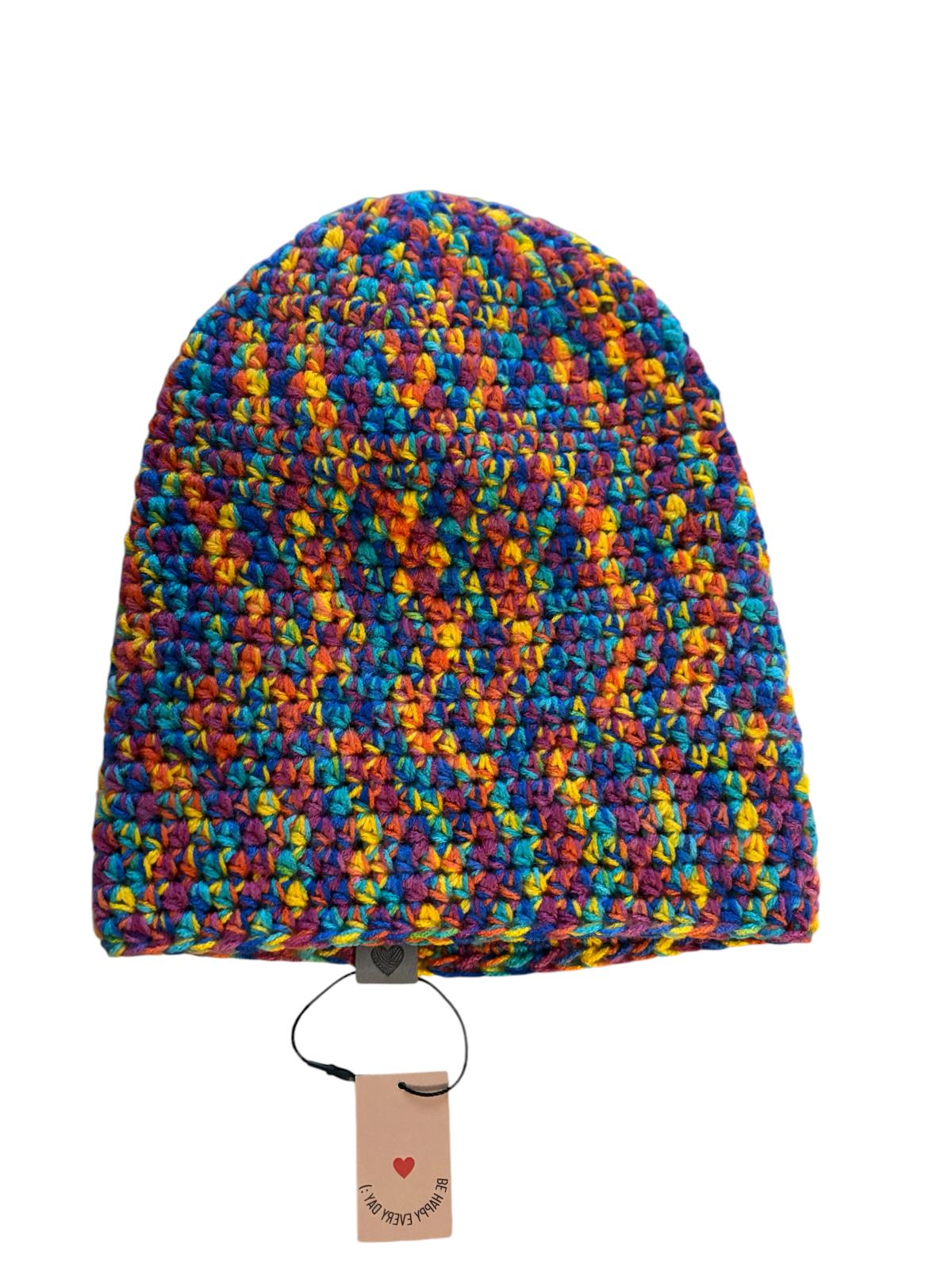 Wielokolorowa, melanżowa czapka, w 100% ręcznie wykonana w Europie.