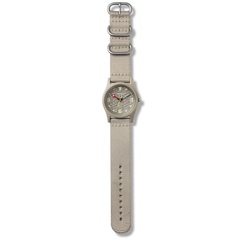 Ten beżowy, ekologiczny zegarek sprawi, że będziesz wyglądać jak ktoś, kto wie, co robi, nawet jeśli wybierzesz się tylko na kawę. Polerowana tarcza z efektem fali 3D przywodzi na myśl głębiny oceanu, a zrównoważony design i wodoodporność do 10 ATM sprawiają, że zegarek idealnie sprawdzi się w mieście i nad morzem. Uderzająca beżowa sylwetka idealnie komponuje się zarówno z formalnymi, jak i codziennymi stylizacjami.