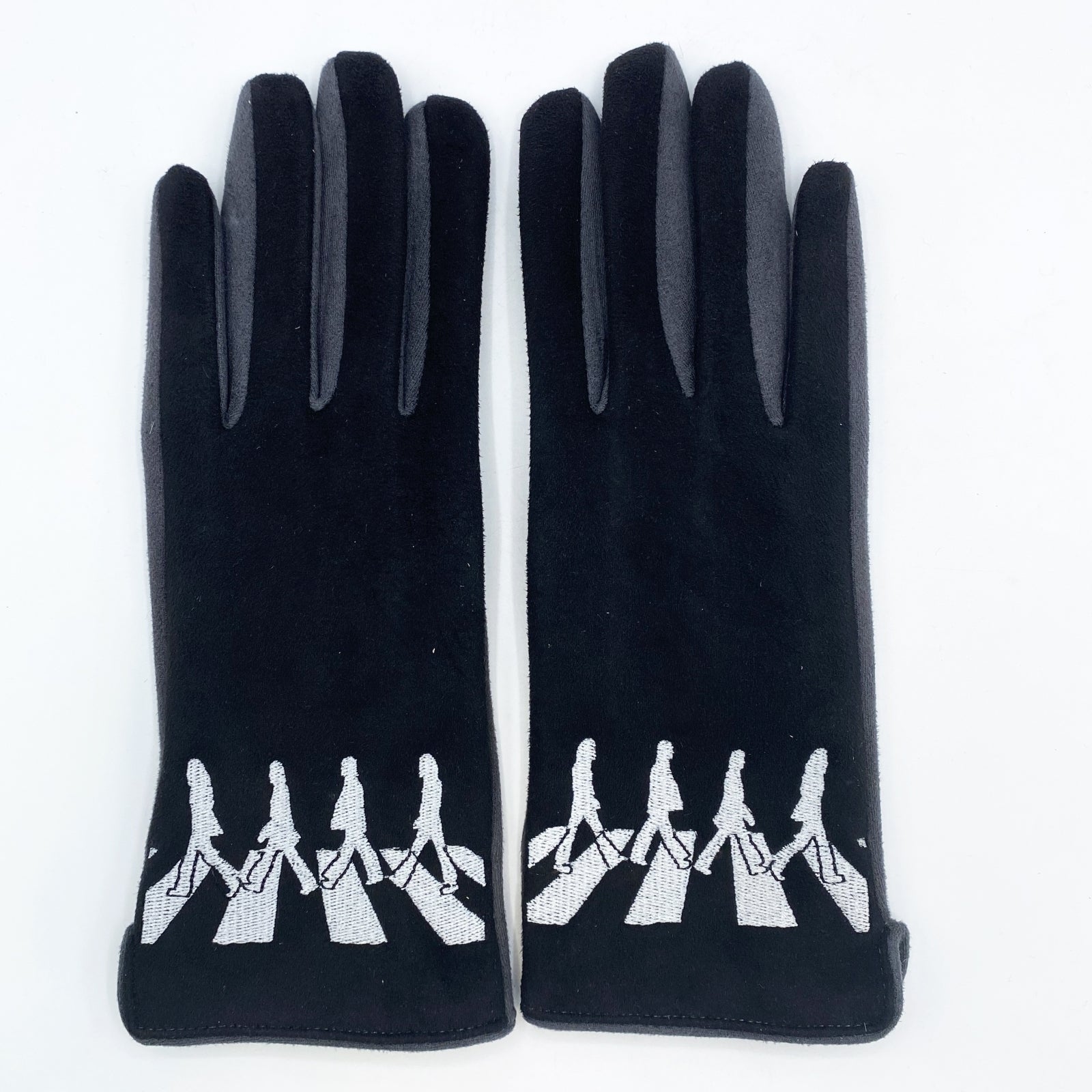 Wyrusz na ulice Londynu i dołącz do Beatlesów, gdy przemierzają słynne skrzyżowanie Abbey Road. Ten ponadczasowy wzór zdobią supermiękkie, ciemne rękawiczki, dzięki czemu dodasz odrobinę ukłonu w stronę Wielkiej Czwórki do każdej stylizacji. Te piękne rękawiczki to natychmiastowy klasyk, ale z pewną różnicą – małe jabłko wyhaftowane na opuszkach palców sprawia, że można nimi obsługiwać ekrany dotykowe! Będą wspaniałym prezentem dla każdego fana Beatlesów.