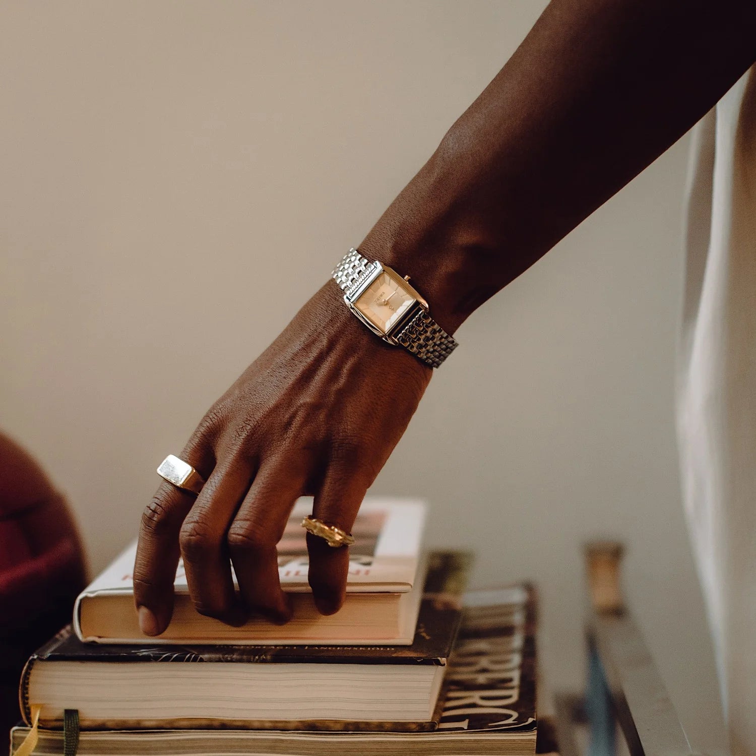 Time for Power Gold to nie tylko zegarek; to odważny, codzienny hołd dla niepowstrzymanej siły kobiet. Klasyka spotyka się z nowoczesnością w śmiałej, nowej formie. Dzięki opływowej, prostokątnej sylwetce, promiennej tarczy z promieniami słońca i dodającym mocy detalom, takim jak grawerowana mantra „YOU GOT THIS” i kultowy symbol kobiecości, zegarek ten jest noszonym przypomnieniem, by zająć przestrzeń i dać się usłyszeć. Ten zegarek ze stali nierdzewnej, stworzony przez kobiety dla kobiet, przekształca cichą elegancję w wyrazisty akcent. I ma w sobie odpowiednią dawkę energii. Ubierasz się energicznie? To jest właśnie energiczne stukanie.