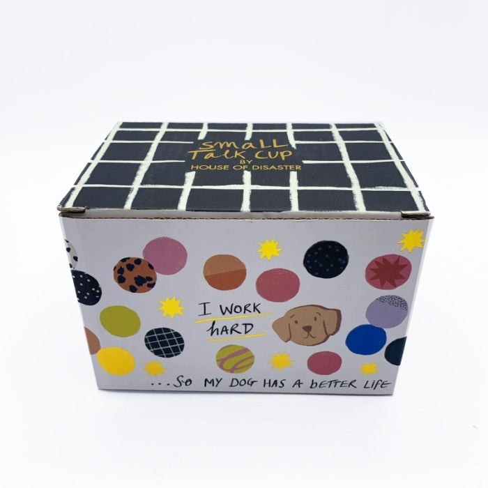 Small Talk 'I Work Hard' beker met de afdruk van een hond.