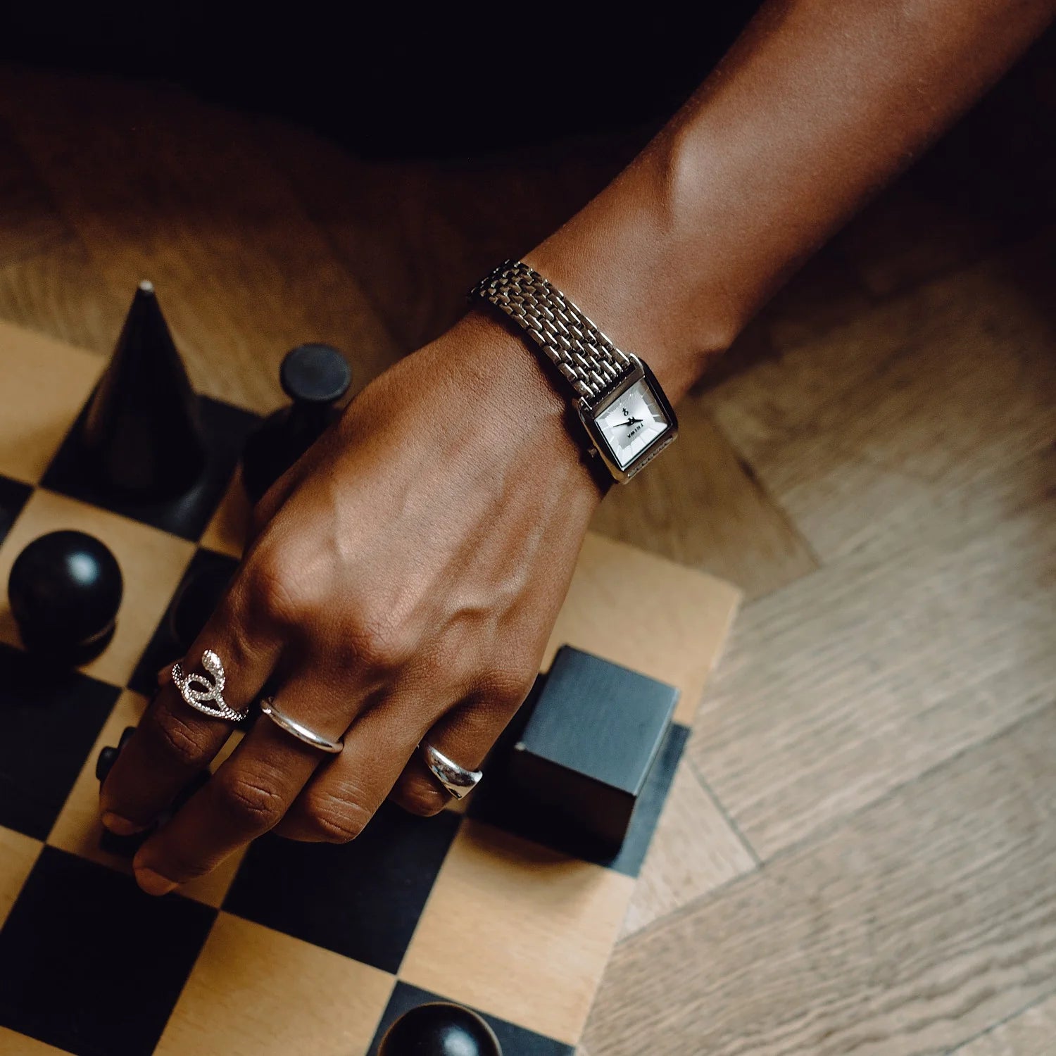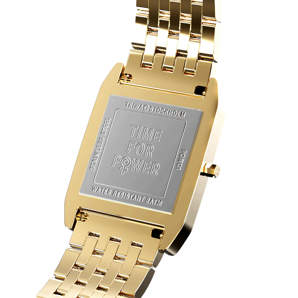 Time for Power Gold is niet zomaar een horloge, het is een gedurfd, alledaags eerbetoon aan de onstuitbare kracht van vrouwen. Klassiek ontmoet modern in een gedurfde nieuwe vorm. Met een gestroomlijnd rechthoekig silhouet, een stralende sunray wijzerplaat en empowerende details zoals de ingegraveerde "YOU GOT THIS" mantra en het iconische vrouwelijke symbool, is het een draagbare herinnering om ruimte in te nemen en je eigen stem te laten horen. Dit roestvrijstalen horloge, gemaakt door vrouwen voor vrouwen, verandert stille elegantie in een krachtig statement. En het heeft precies de juiste hoeveelheid pit. Power dressing? Dit is kracht tikken.